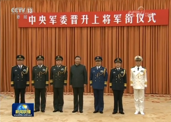 中央军委举行晋升上将军衔仪式 习近平向晋升上将军衔的张升民颁发命令状并表示祝贺